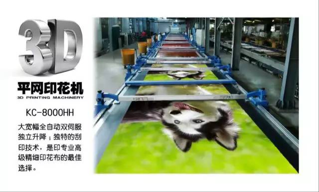 3. KC-8000V:全電腦自動(dòng)化平網(wǎng)印花機(jī)(專(zhuān)印成衣面料、針織布、梭織布、裝飾布、床單、窗簾等面料)